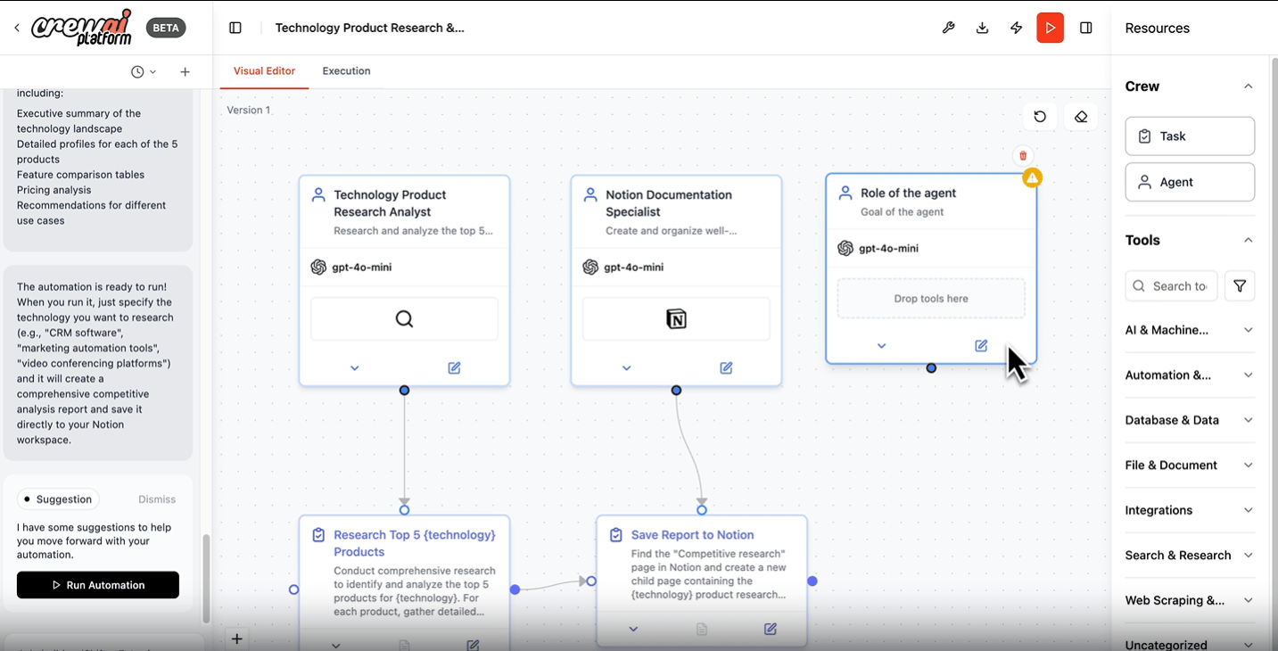 You define each agent's role, capabilities, and constraints. You specify how agents communicate and collaborate. This approach requires technical expertise but enables highly customized solutions tailored to your specific needs.